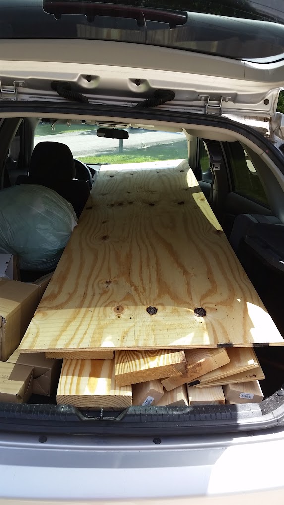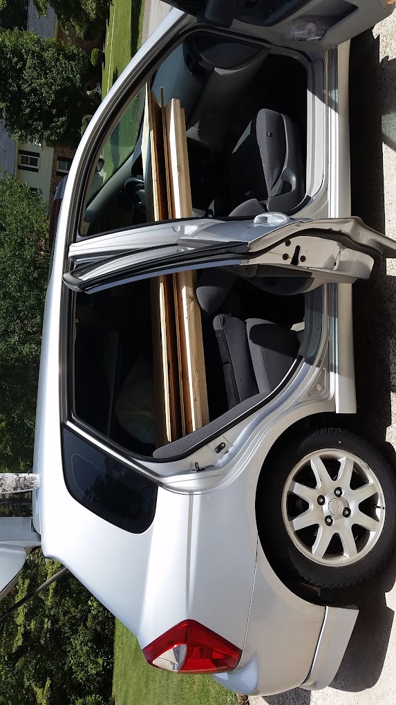This is an interesting and probably good idea, but to fit 8 foot boards in my Pontiac Vibe, I just pop the headrests out and lay them on the tops of the seats which align well with the dashboard, then to secure the boards better I slide the headrests back in, either trapping the boards on the far passenger side or if it’s just a couple trim boards, right on top of the boards.